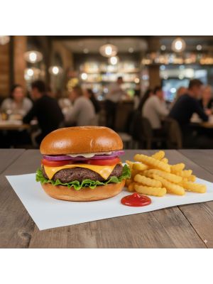 El papel antigrasa para hostelería es perfecto para envolver hamburguesas, bocadillos, sándwiches, porciones de pizza, repostería, productos fritos y cualquier alimento que desprenda aceites o salsas. Gracias a su resistencia y tratamiento especial, evita filtraciones de grasa y mantiene la frescura de los productos hasta el momento de su consumo.