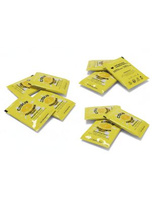 Toallitas húmedas multiusos para limpieza de manos. Refrescantes. Ideal para el uso en hostelería con comidas que puedan dejar olor en manos, como por ejemplo mariscos. Tienen un tamaño de 6x8 cm. una vez desplegada. Se suministra plegada y enfundada de forma individual.